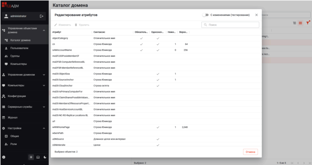 В обновление вошёл и другой функционал, улучшающий пользовательский опыт и повышающий эффективность администрирования. Ниже представлен обзор всех возможностей РЕД АДМ Промышленной редакции 2.1.