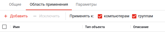 С помощью чекбоксов можно выбрать, какие типы объектов входят в область применения -- компьютеры и/или группы.