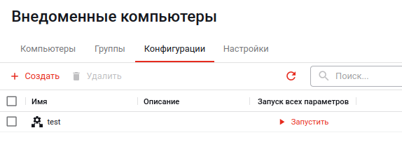 4) Закончив добавление компьютеров в список, нажмите кнопку «Создать» в этом же модальном окне. После этого компьютеры из списка на добавление появятся в списке внедоменных компьютеров.