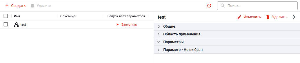 5) При нажатии на имя конфигурации в списке, в правой панели появляется информация о свойствах конфигурации (общие свойства, область применения, параметры). Также при помощи кнопок «Изменить» и «Удалить» в правом верхнем углу панели можно, соответственно, изменить эти свойства или же удалить конфигурацию: