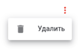 Удалить группу можно, нажав на кнопку «Удалить» в правом верхнем углу. Если ширина окна браузера меньше определённой величины, то в правом верхнем углу будет отображаться значок из трёх точек -- если на него нажать ЛКМ, то во всплывающем меню появится кнопка «Удалить»: