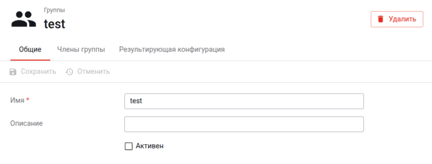 5) Во вкладке «Общие» можно изменить имя группы, её описание и активность. После внесения изменений их нужно сохранить, нажав соответствующую кнопку. Если изменения не были сохранены, их можно отменить, нажав кнопку «Отменить».