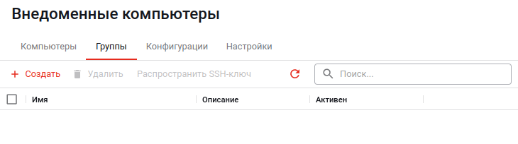 Работа с группами ведётся на вкладке «Группы» страницы «Внедоменные компьютеры»: