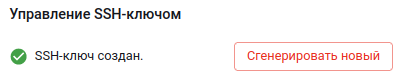 2) В секции «Управление SSH-ключом» показан статус SSH-ключа.