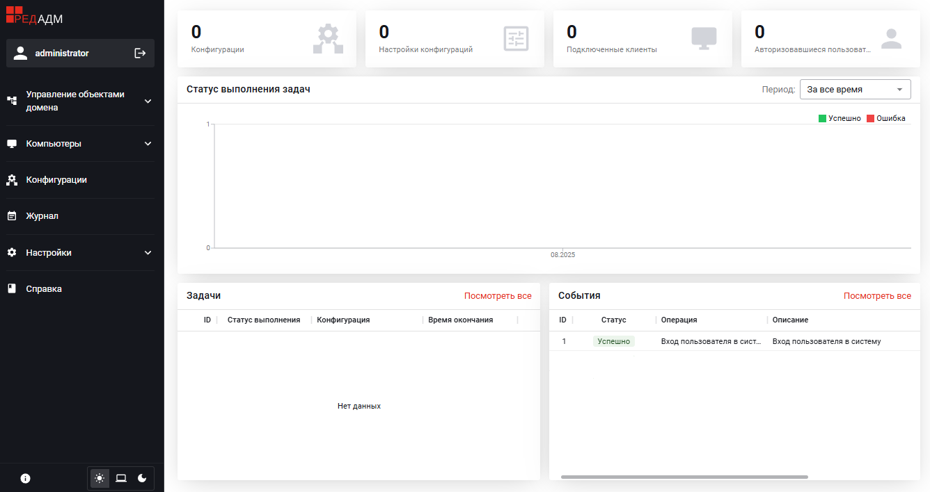Подсистема управления (РЕД АДМ Сервер) настраивается через веб-интерфейс.