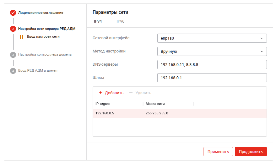 1) Применив настройки параметров сети сервера РЕД АДМ и контроллера домена (если он создаётся), проверьте доступность репозиториев для этих хостов.